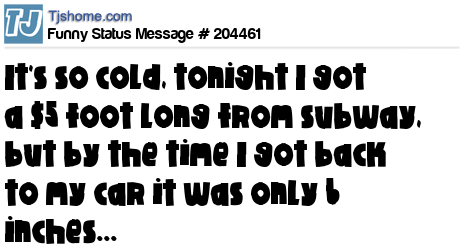 X says It's so cold, tonight I got a $5 foot long from subway, but by the time I got back to my car it was only 6 inches...