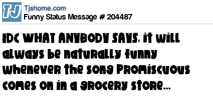 X says IDC WHAT ANYBODY SAYS, it will always be naturally funny whenever the song Promiscuous comes on in a grocery store...