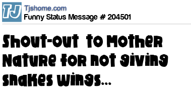 X says Shout-out to Mother Nature for not giving snakes wings...
