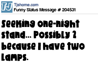 X says Seeking one-night stand... Possibly 2 because I have two lamps.