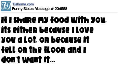 - # 89745 If I share my food with you, its either because I love you a lot, or because it fell on the floor and I don't want it.