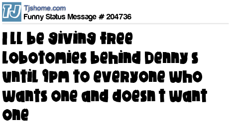 X says I’ll be giving free lobotomies behind Denny’s until 9pm to everyone who wants one and doesn’t want one