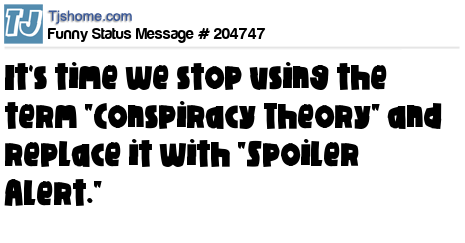 - # 206275 At this point, conspiracy theories might as well be called spoiler alerts.