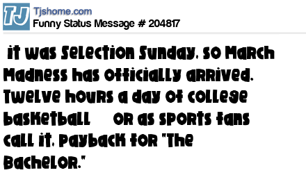 X says it was Selection Sunday, so March Madness has officially arrived. Twelve hours a day of college basketball — or as sports fans call it, payback for "The Bachelor."​
