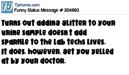 X says Turns out adding glitter to your urine sample doesn’t add sparkle to the lab techs lives. It does, however, get you yelled at by your doctor.