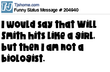 X says I would say that Will Smith hits like a girl, but then I am not a biologist.