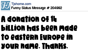 X says A donation of 14 billion has been made to eastern Europe in your name. Thanks.