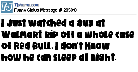 X says I just watched a guy at Walmart rip off a whole case of Red Bull. I don't know how he can sleep at night.