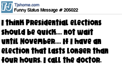X says I think Presidential elections should be quick.... not wait until November.... If I have an election that lasts longer than four hours, I call the doctor.