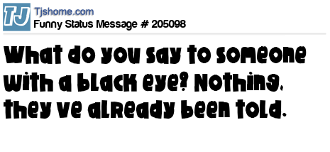 X says What do you say to someone with a black eye? Nothing, they’ve already been told.