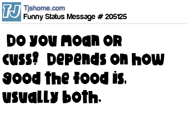 X says “Do you moan or cuss?” Depends on how good the food is, usually both.