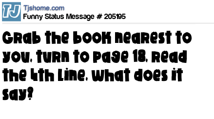 X says Grab the book nearest to you, turn to page 18, read the 4th line, what does it say?