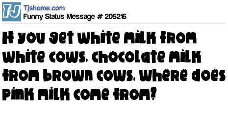 X says If you get white milk from white cows, chocolate milk from brown cows, where does pink milk come from?