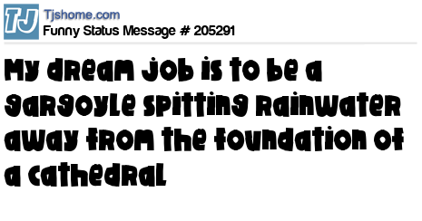 X says My dream job is to be a gargoyle spitting rainwater away from the foundation of a cathedral