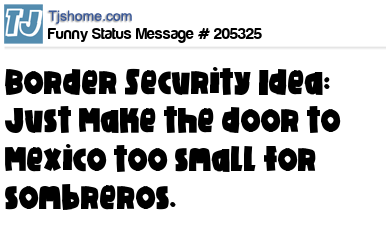 - # 116701 Border Security Idea: Make the door to Mexico too small for sombreros.