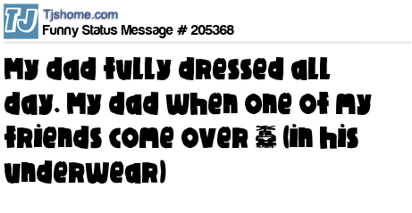X says My dad fully dressed all day. My dad when one of my friends come over ~ (in his underwear)