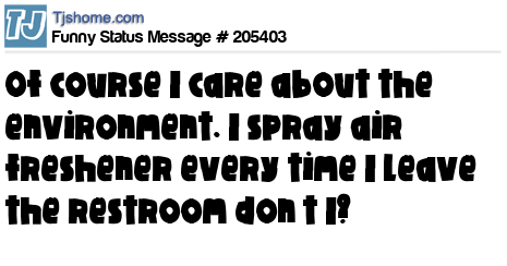 X says Of course I care about the environment. I spray air freshener every time I leave the restroom don’t I?