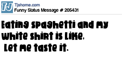 X says Eating spaghetti and my white shirt is like, “let me taste it.”