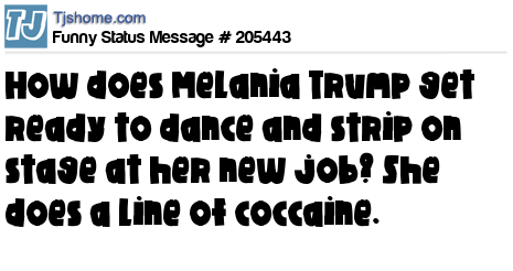X is How does Melania Trump get ready to dance and strip on stage at her new job? She does a line of coccaine.