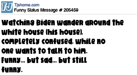 X is Watching Biden wander around the white house (his house), completely confused, while no one wants to talk to him. Funny... but sad... but still funny.