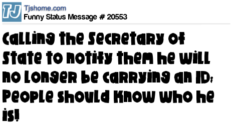 X is calling the Secretary of State to notify them he will no longer be carrying an ID; People should know who he is!