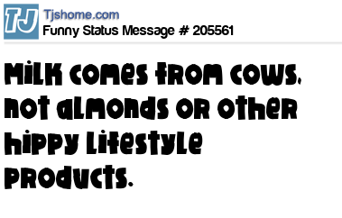 X says Milk comes from cows, not almonds or other hippy lifestyle products.