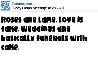 X says Roses are lame, love is fake, weddings are basically funerals with cake.