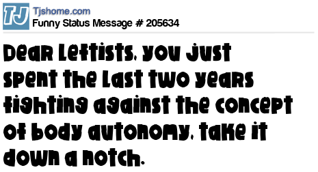 X says Dear leftists, you just spent the last two years fighting against the concept of body autonomy, take it down a notch.