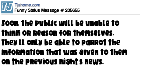 X says Soon, the public will be unable to think or reason for themselves. They’ll only be able to parrot the information that was given to them on the previous night’s news.