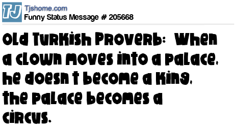 X says Old Turkish Proverb: “When a clown moves into a palace, he doesn’t become a king, the palace becomes a circus.”