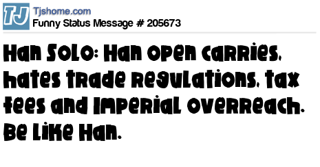 X says Han Solo: Han open carries, hates trade regulations, tax fees and Imperial overreach. Be like Han.