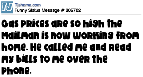 X says Gas prices are so high the Mailman is now working from home. He called me and read my bills to me over the phone.