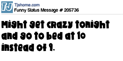 X says Might get crazy tonight and go to bed at 10 instead of 9.