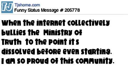 X says When the internet collectively bullies the “Ministry of Truth” to the point it’s dissolved before even starting. I am so proud of this community.