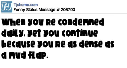 X says When you’re condemned daily, yet you continue because you’re as dense as a mud flap.