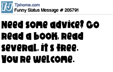 X says Need some advice? Go read a book, read several, it’s free. You’re welcome.