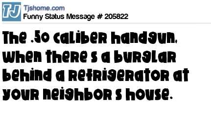 X says The .50 caliber handgun, when there’s a burglar behind a refrigerator at your neighbor’s house.