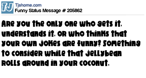 X says Are you the only one who gets it, understands it, or who thinks that your own jokes are funny? Something to consider while that jellybean rolls around in your coconut.
