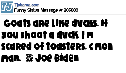 X says “Goats are like ducks, if you shoot a duck, I’m scared of toasters, c’mon man.” ~ Joe Biden
