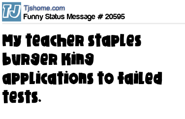 - # 83321 My math teacher staples Burger King applications on failed tests.