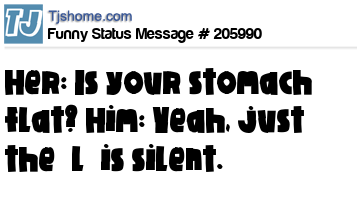 X says Her: Is your stomach flat? Him: Yeah, just the “L” is silent.