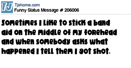 X says Sometimes I like to stick a band aid on the middle of my forehead and when somebody asks what happened I tell them I got shot.