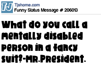 - # 208207 What do you call a mentally disabled person in a fancy suit? -Mr.President...