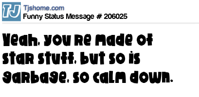 X says Yeah, you’re made of star stuff, but so is garbage, so calm down.