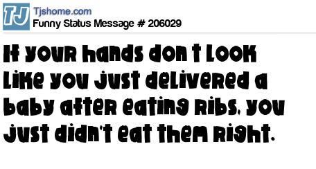 X says If your hands don’t look like you just delivered a baby after eating ribs, you just didn't eat them right.