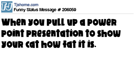 X says When you pull up a power point presentation to show your cat how fat it is.