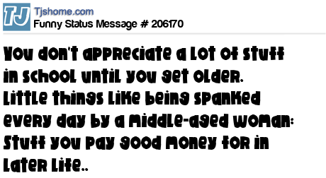 - # 19517 You don't appreciate a lot of stuff in school until you get older. Little things like being spanked every day by a middle-aged woman: Stuff you pay good money for in later life.