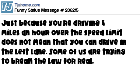 - # 208509 I don't understand why people get in the left lane just to drive the speed limit. That lane is for crime.