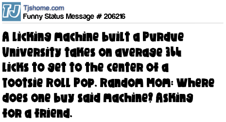 X says A licking machine built a Purdue University takes on average 364 licks to get to the center of a Tootsie Roll Pop. Random Mom: Where does one buy said machine? Asking for a friend.