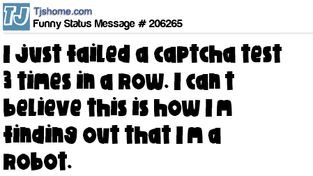- # 183012 I keep failing this captcha test and now I think I may be a robot